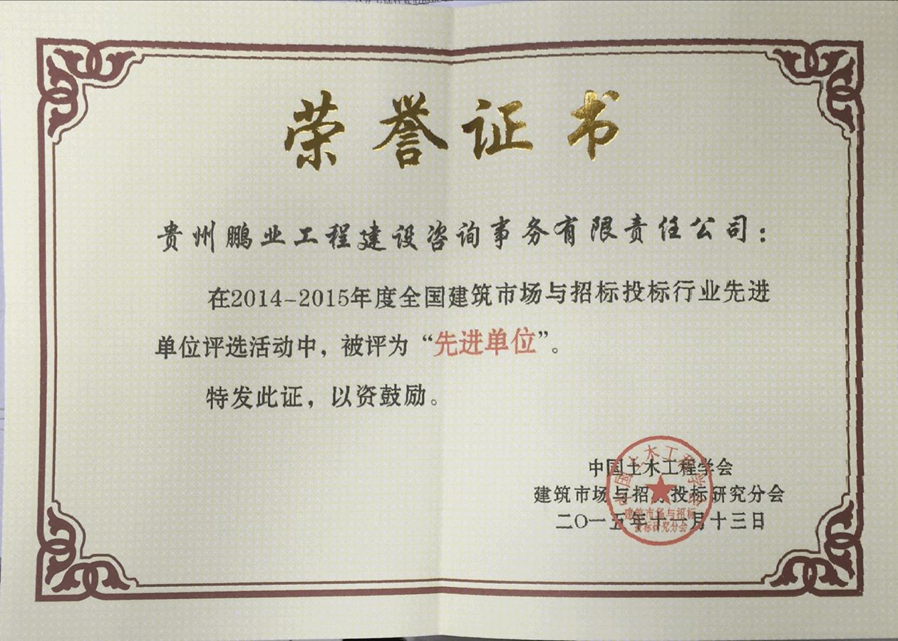 獲得2014-2015年度全國建筑市場與招標(biāo)投標(biāo)