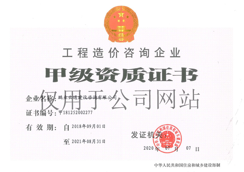 工程造價(jià)咨詢甲級資質(zhì)證書